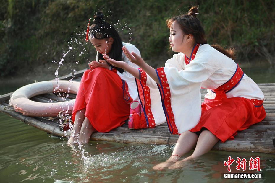 3月29日,一場(chǎng)重現(xiàn)中國古代春秋時(shí)期上巳節(jié)“曲水流觴、臨水浮卵、水上浮棗”風(fēng)俗的活動(dòng)在江蘇常州淹城春秋樂園內(nèi)上演。據(jù)記載,在上述三種水上活動(dòng)中,以臨水浮卵最為古老,它是將煮熟的雞蛋放在河水中,任其浮移,誰拾到誰食之。水上浮棗和曲水流觴則是由臨水浮卵演變來的。
