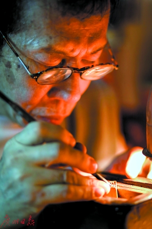 燙金絲印、公章膠印、原子印章……在和平西路9號(hào)有一家毫不起眼的刻章店——秋記刻章工藝,這里記錄著一段百年三代人的篆刻家族史。19世紀(jì)末期,叔公項(xiàng)信南隨著戲班來到廣州,成為一位金石篆刻名家;20世紀(jì)初,幼年喪父的項(xiàng)少南來到省城投奔叔叔項(xiàng)信南,也成為知名篆刻藝人,直到90歲高齡仍篆刻不輟;上世紀(jì)60年代,項(xiàng)少南之子項(xiàng)頌秋子承父業(yè),如今已入行57年。如今,隨著機(jī)器刻章的興起,從秋哥變成秋叔的71歲項(xiàng)頌秋卻面臨著手藝失傳。“如果有毅力的人想學(xué),我愿意免費(fèi)教學(xué)?!彼f。