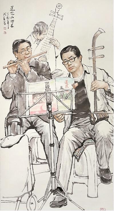 蓮花山腳下,幾位老年人聚在一起,拉二胡、吹笛等,秀出“十八般武藝”;書屋一角,一群孩子席地而坐,捧著心愛的讀物專心致志地看起來……此次國畫展以中國畫的形式表達(dá)了畫者對福田、對祖國的深情厚誼和對美好生活的向往熱愛,也展現(xiàn)了廣大老年人在福田區(qū)生活的良好精神文化生活狀態(tài)。園嶺街道老年協(xié)會的朱女士觀展后說,畫展給轄區(qū)長者搭建了充分發(fā)揮自己才藝的平臺,展現(xiàn)出轄區(qū)老年人充實愉快的晚年生活;同時,令老年人減輕對子女的依賴,活出獨立的生活品味。
