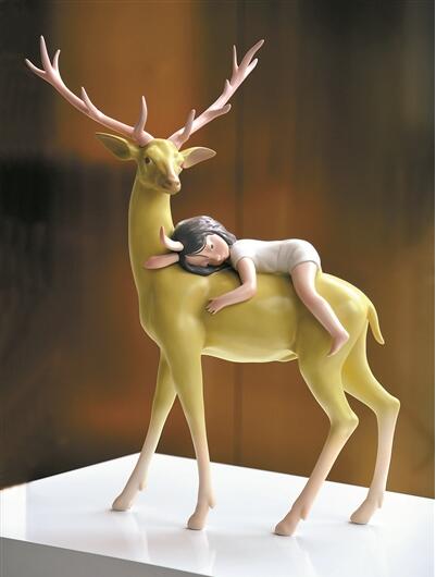 賈曉鷗作品《悅悅》。以天使少女為形象的悅悅代表著喜悅,包含著童話的美感,又?jǐn)y帶著對未來的憧憬與希冀。