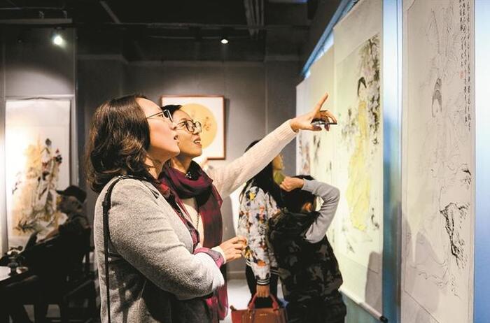 記者在現(xiàn)場(chǎng)看到,展覽精品匯萃不斷,內(nèi)容豐富,既有山水畫(huà)又有人物畫(huà),也涵蓋了工筆、寫(xiě)意、花鳥(niǎo)多種類(lèi)型,集中呈現(xiàn)了戴培仁師生的藝術(shù)水平與藝術(shù)追求。