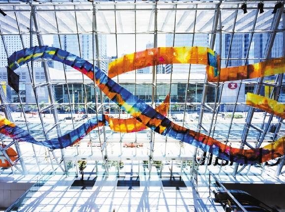 ▲盛姍姍在香港國際金融中心二期(IFC)的作品《舞動(dòng)的絲帶》。 (受訪者供圖)