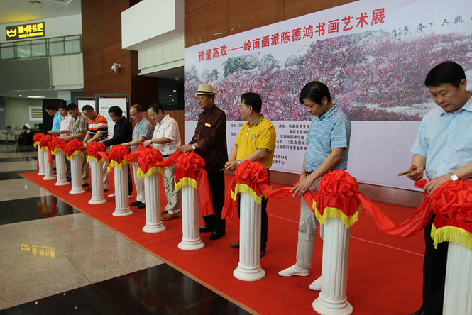 深圳新聞網(wǎng)訊(記者周錦春 通訊員孫善文)5月6日,雷州籍嶺南畫派青年畫家陳德鴻書畫藝術(shù)展在寶安區(qū)石巖文化藝術(shù)中心舉行,這是陳德鴻舉辦的第三十五場個人作品展,也是其在深圳地區(qū)舉辦的第七場。 本次畫展由寶安區(qū)美術(shù)家協(xié)會主辦,石巖街道黨建服務(wù)中心、深圳市雷州商承辦,廣東電視臺、深圳市湛江商會、深圳鐘國康印館、《書法報》深圳站、《伶仃洋》雜志社等單位協(xié)辦,展出了陳德鴻近期創(chuàng)作的60幅書畫作品, 200多名書畫名家和書法愛好者到場欣賞、祝賀,廣東電視臺及深圳多家媒體現(xiàn)場采訪報道。 ? “雅量高致”為陳德鴻在藝術(shù)上取得相當(dāng)突顯的成績后,其大學(xué)導(dǎo)師、書畫名家周彥生先生所題贈,其意為氣度寬宏,情致高雅,雅正不俗。這四個字也成為本次展覽的主題。 嶺南畫派成立于上世紀(jì)三十年代,秉承“折衷中外,融合古今”這一宗旨,不但保留了屬于自己的藝術(shù)風(fēng)格及繪畫理念,還將至適應(yīng)時代發(fā)展,創(chuàng)制出有時代精神、有地方特色、氣氛酣暢熱烈、筆墨勁爽豪縱、色彩鮮艷明亮、水墨淋漓、暈染柔和勻凈的現(xiàn)代繪畫新格局。 陳德鴻2004年畢業(yè)于廣州美術(shù)學(xué)院。求學(xué)期間,得到了關(guān)山月、黎雄才、陳金章、周彥生、林豐俗、劉書民等嶺南名家的指導(dǎo),從而為今日的異彩奠定了堅實的基礎(chǔ)。在本科時期又直接受教于李勁堃老師、張彥老師。畢業(yè)后,他一直住在廣州美術(shù)學(xué)院,跟隨導(dǎo)師們上山下鄉(xiāng)寫生創(chuàng)作,前后整整十年,繪畫水平漸露崢嶸,并得到了導(dǎo)師的喜愛和贊賞。 十多年來,陳德鴻常往云南、山西、河南、廣西、安徽等地寫生,行萬里路,讀萬卷書,十年風(fēng)雨使得他有開拓的眼界來審視自身的繪事。在藝術(shù)的道路上,他不斷地探索著,在大自然間理解傳統(tǒng)繪畫的筆墨結(jié)構(gòu)與自然結(jié)構(gòu)。這種繪畫軌跡,亦是陳德鴻探索時期的痕跡,墨氣輕重有度,使得樸素人生詩意盎然。廣東省宣傳部原副部長胡中梅和區(qū)美術(shù)家協(xié)會主席閻敏在看了畫展后認(rèn)為,陳德鴻的作品畫面布局開合有致,氤氳雅麗,寫出了意境,體現(xiàn)出他對筆墨技法的運(yùn)用已經(jīng)純熟自如,返璞歸真,其作品意境獨特、功力深厚、構(gòu)圖新穎、集中體現(xiàn)了畫家的自然觀與社會審美意識。