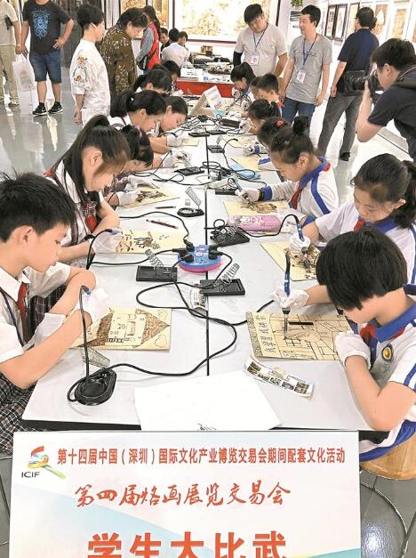 第四屆烙畫展覽交易會(huì)組委會(huì)負(fù)責(zé)人介紹,過去一年,光明烙畫在光明新區(qū)管委會(huì)的大力支持和社會(huì)各界的幫助下,已走進(jìn)部分學(xué)校授課,受到學(xué)生們的歡迎。在第八屆中國(guó)國(guó)際新聞短片節(jié)中,烙畫得到了國(guó)際友人的了解、認(rèn)可,更得到他們的喜歡和點(diǎn)贊。今年4月6日,光明烙畫也走進(jìn)了北京大學(xué)校園,得到師生們的一致好評(píng)。為了辦好今年的展交會(huì),組委會(huì)于2018年1月份就開始籌備、宣傳、征稿,來自全國(guó)20多省市的120余名烙畫藝術(shù)家參加,作品有300余幅。參展作品題材豐富多樣,有人物畫、山水畫、動(dòng)物畫、靜物畫、歷史畫等,其中山水畫中以描繪祖國(guó)大好河山的居多。同時(shí),本屆展交會(huì)分兩大展示區(qū),分別是烙畫基地展示區(qū)和光明新區(qū)文化館展示區(qū),其中烙畫基地展區(qū)內(nèi)又分為九個(gè)區(qū)域。此次活動(dòng)安排了烙畫藝術(shù)家畫光明,童心的世界才藝表演,烙畫大比武,特邀國(guó)家級(jí)大師走進(jìn)光明等特色活動(dòng),讓每位參觀者體驗(yàn)具有時(shí)代藝術(shù)特色的烙畫盛宴。