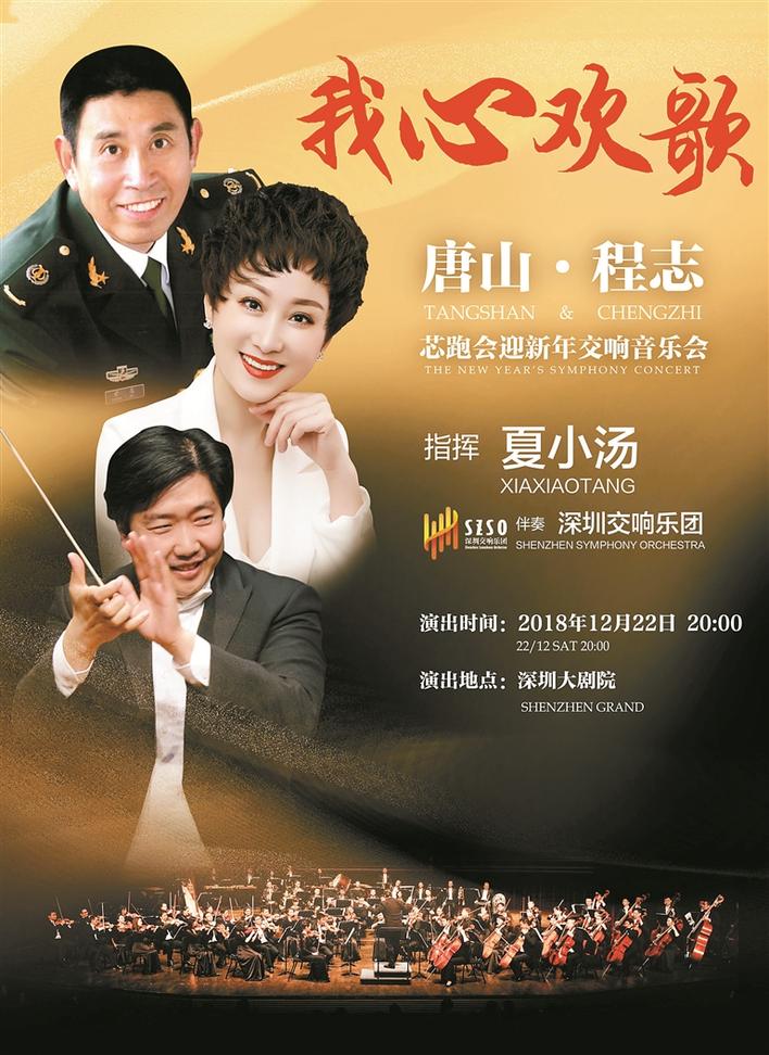 深圳晚報(bào)2018年12月13日訊 12月22日,“我心歡歌”唐山·程志音樂(lè)會(huì)將唱響深圳大劇院。本場(chǎng)音樂(lè)會(huì)由著名指揮家夏小湯執(zhí)棒,深圳交響樂(lè)團(tuán)演奏。當(dāng)晚,深圳本土歌唱家唐山和國(guó)內(nèi)著名男高音程志將為觀眾獻(xiàn)上多首中外經(jīng)典名曲和個(gè)人保留曲目。