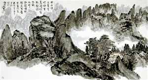 王和平不僅能書寫2尺的大字,還能寫篆書、隸書、行書、草書、楷書,他尤其擅長以指書寫長線條幅,還能書寫小到1寸左右的楷書、行書、草書等各種書體。“從他的《黃山系列》,我看到了一個堅強的古典腳步,追尋在范寬的《谿山行旅途》中,沐李唐的《萬壑松風圖》,聽馬遠的《踏歌圖》……一個精美絕倫的藝術時代遠逝而去,念天地之悠悠,獨愴然而涕下。留幽幽懷古者,追憶圣賢高士清歌古琴于卷軸中的絕美風騷。王和平和我都是這個幽幽懷古者,追求高貴古典精神的尋賢之人。”這是評論家豐川在他的《心有千像,十指墨弦》一文中評價王和平的指書所述。