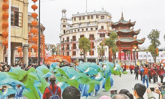 汕頭市元宵群眾歡樂(lè)匯文藝巡游將傳統(tǒng)文化和時(shí)尚元素巧妙結(jié)合。