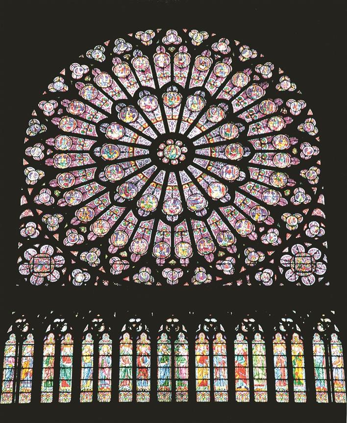 彩繪玻璃花窗“玫瑰花窗”也是巴黎圣母院內(nèi)的重要文物。18世紀(jì),巴黎圣母院在路易十四統(tǒng)治時(shí)期經(jīng)歷了一次大修,12世紀(jì)留下的彩色玻璃窗被換成了透明玻璃窗,只有三扇玫瑰彩色玻璃窗被保留下來,也成為圣母院如今的著名景觀之一。在雨果的小說《巴黎圣母院》熱銷后,巴黎民眾和政府官員開始呼吁對(duì)這一“寶藏”進(jìn)行修復(fù)。1844年,在建筑大師維歐勒·勒·杜克的帶領(lǐng)下,修復(fù)了圣母院的西立面、國(guó)王畫廊,還添加了十二圣徒雕塑以及圣母院屋檐上著名的怪獸雕塑。