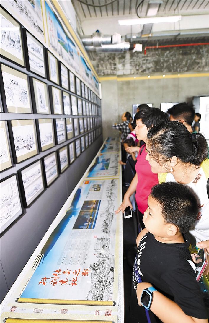 近日,第十五屆文博會配套文化活動——老鵬城人眼中的深圳精神《深圳千影繪畫攝影作品展》及《深圳千影畫卷》百名少年繪鵬城大型創(chuàng)作活動在深圳蛇口郵輪中心舉行,許多家長帶孩子來感受老鵬城人眼中的深圳精神。同時,現(xiàn)場展出的中國報業(yè)印刷史上罕見的《深圳商報》20連版新聞長卷,濃縮了深圳改革開放40周年經歷,震撼觀眾。