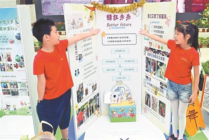 參賽同學(xué)在向評(píng)委介紹展覽內(nèi)容。 深圳晚報(bào)記者 馮明 攝