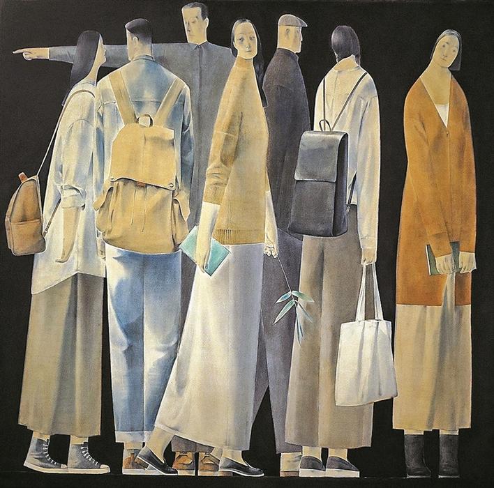 梁國輝的《新生》體現(xiàn)出一種新的圖像構(gòu)建的可能性,塑造出的人物形象具有生動的情感和鮮明的個性;涂蓉蓉的《鏗鏘之音》以抽象的表現(xiàn)方式讓我們感到“無形”和“有形”之間的微妙關(guān)系;王彪的《收工之八十六》展現(xiàn)其寫實功底,并致力于探索如何用更加多元的藝術(shù)語言來表達(dá)自己的感受。
