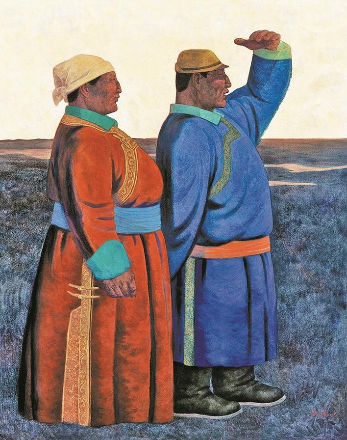頡元芳的《遠(yuǎn)方》表現(xiàn)了內(nèi)蒙古西北草原民族的人文情感和真實的生活狀態(tài);向園的《夏風(fēng)》運用浪漫主義和象征主義的創(chuàng)作手法,讓我們回到一種自然、安寧、和諧的畫境之中;奚忠恕的《天路》,讓我們直面感受到面對“最美奮斗者”,用畫筆為他們點贊;吳登軍的《遺失的世界系列——三十六》呈現(xiàn)了他對環(huán)境問題的思考。