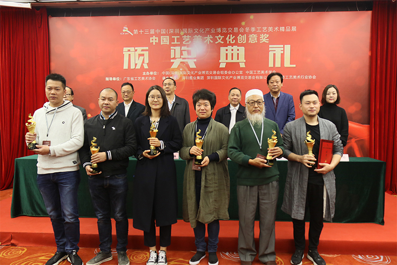 12月11日上午,第十三屆文博會冬季工藝美術精品展中國工藝美術文化創(chuàng)意獎頒獎典禮在深圳會展中心5樓玫瑰3廳舉行。