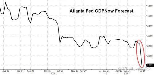 但最嚴(yán)重的下調(diào)來(lái)自亞特蘭大聯(lián)邦儲(chǔ)備銀行,在今天的零售數(shù)據(jù)公布后,該行將GDP預(yù)測(cè)下調(diào)至1.5%,較2月6日的2.7%下降了近50%。