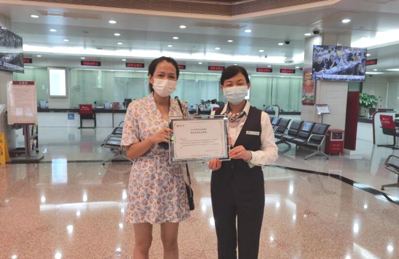 深圳中行工作人員為購買客戶頒發(fā)“深圳市地方債券柜臺首發(fā)紀念憑證”