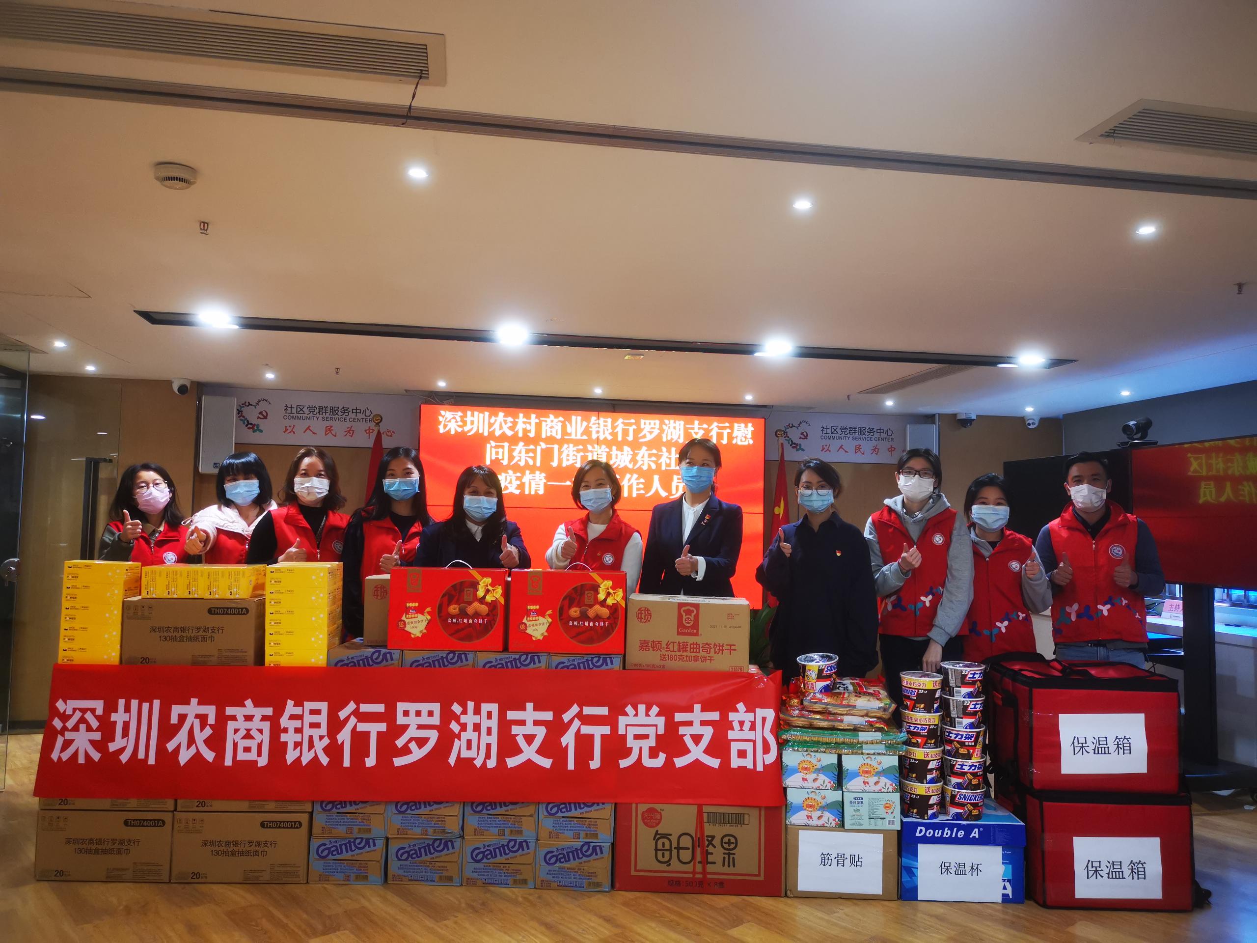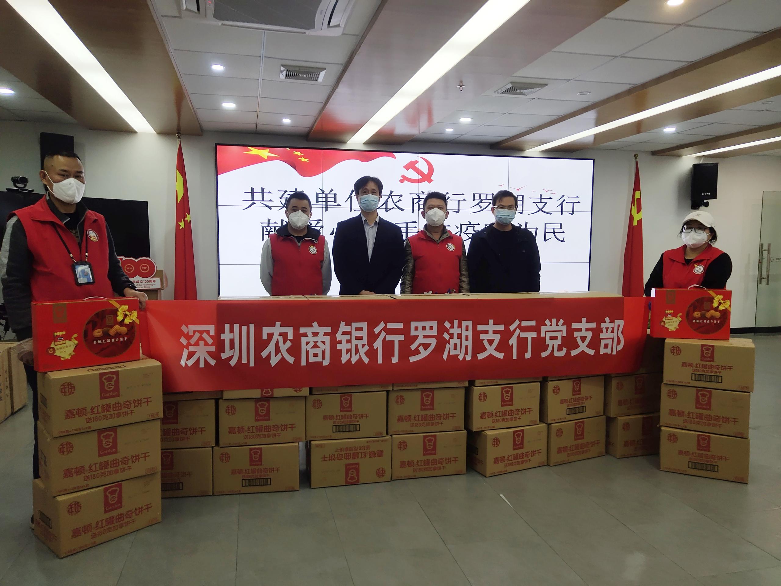 雖不能上前線抗疫,但作為羅湖區(qū)的本地金融企業(yè),在看到抗疫人員的辛苦付出后,深圳農商銀行羅湖支行主動發(fā)起“情暖疫線,羅湖加油”活動,轄下各網點員工在做好疫情防控前提下,為一線抗疫人員送上曲奇餅、紙巾、礦泉水等溫暖物資,慰問抗疫人員,積極履行作為金融企業(yè)的社會責任。截至目前,活動共覆蓋羅湖草埔東、蓮塘、黃貝嶺等八個社區(qū),并在繼續(xù)開展中。