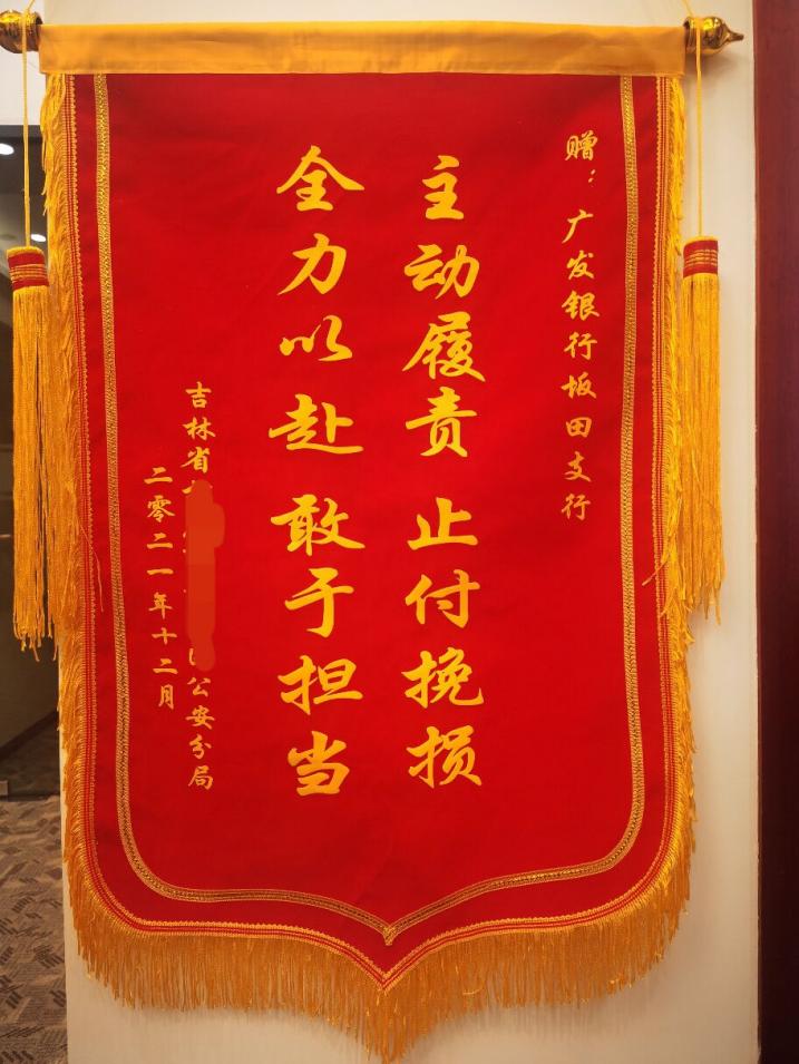 深圳新聞網(wǎng)2022年1月18日訊(記者 朱琳 通訊員 金橋)近日,廣發(fā)銀行深圳分行機智識別某公司賬戶涉嫌電信詐騙,成功堵截高達412萬元的涉案資金轉(zhuǎn)移。吉林省某市公安分局向該行授予錦旗,對該行有效保障人民群眾財產(chǎn)安全的行為給予了高度肯定。