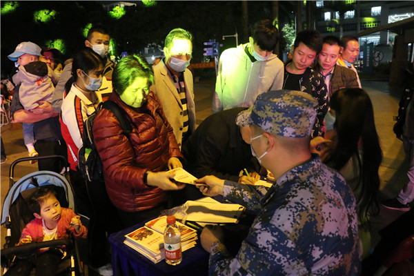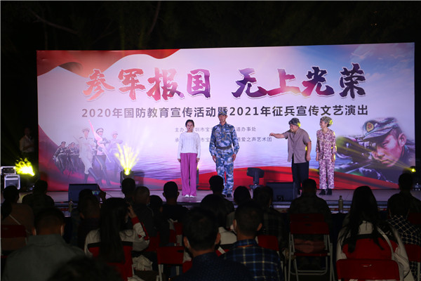 演出中間穿插著跟征兵主題相關(guān)的有獎(jiǎng)問答環(huán)節(jié),普及征兵和國(guó)防知識(shí),增強(qiáng)活動(dòng)趣味性,互動(dòng)性,現(xiàn)場(chǎng)的群眾踴躍參與答題。