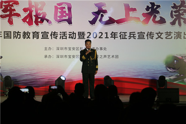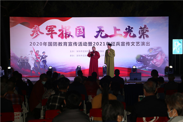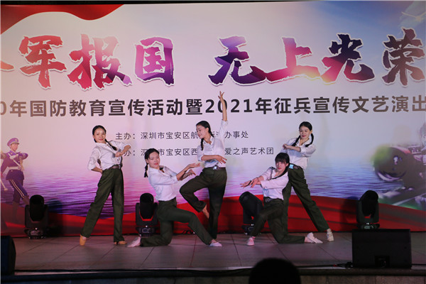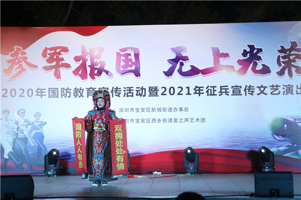 見圳客戶端?深圳新聞網(wǎng)2020年12月2日訊 為增強(qiáng)轄區(qū)居民的國(guó)防意識(shí),做好今年冬季征兵工作,12月1日,深圳市寶安區(qū)航城街道辦“參軍報(bào)國(guó) 無上光榮”為主題的國(guó)防教育宣傳活動(dòng)暨2021年征兵宣傳文藝演出在航城街道辦成功舉辦。此次活動(dòng)由深圳市寶安區(qū)航城街道辦主辦,寶安區(qū)西鄉(xiāng)街道辦愛之聲藝術(shù)團(tuán)承辦。