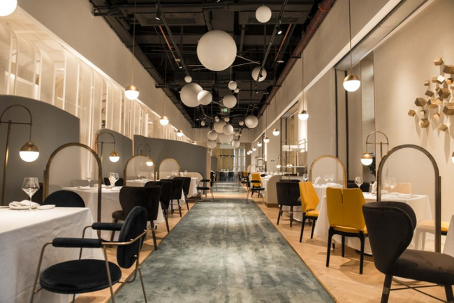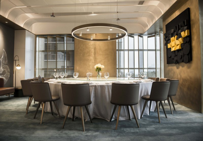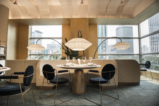 以黑色和金色為主色調(diào)的梧桐PLUS,選用流動(dòng)的線條對(duì)餐廳空間進(jìn)行分割。桌與桌之間的距離保證了食客對(duì)話的私密性和安全性。即使沒有預(yù)定到包廂,也不用擔(dān)心旁邊食客的閑聊會(huì)影響到彼此。