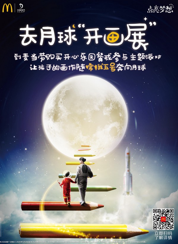 麥當(dāng)勞中國與“中國探月”合作,讓兒童夢想畫作隨“嫦娥五號”奔向月球。