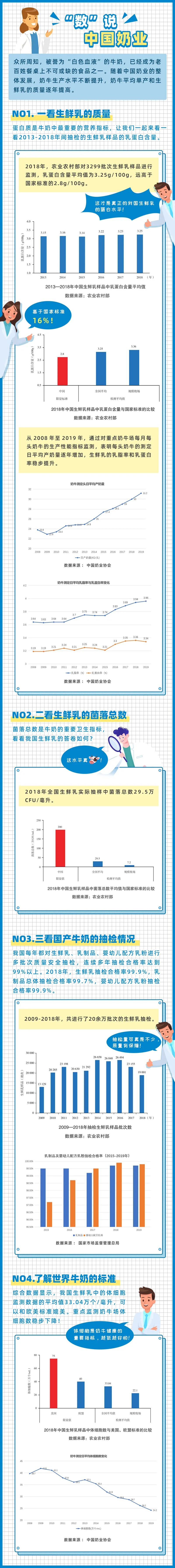 今日,中國奶業(yè)協(xié)會公眾號發(fā)布了“‘數(shù)’說中國奶業(yè)”的文章,文章顯示,近年來,中國奶業(yè)產(chǎn)量質(zhì)量“雙”提升,在一些關鍵指標上,國內(nèi)規(guī)模牧場指標優(yōu)于國家標準,甚至超過歐美國家的標準。