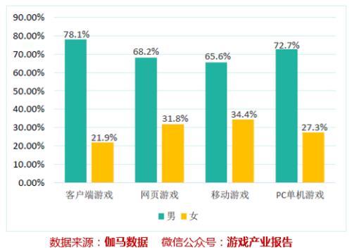 中國音數(shù)協(xié)游戲工委、伽馬數(shù)據(jù)的《2016中國游戲產(chǎn)業(yè)報(bào)告》曾經(jīng)指出:在國內(nèi)的大部分游戲平臺(tái)上,女性玩家和男性玩家整體都呈現(xiàn)出近似于三七開的比例。