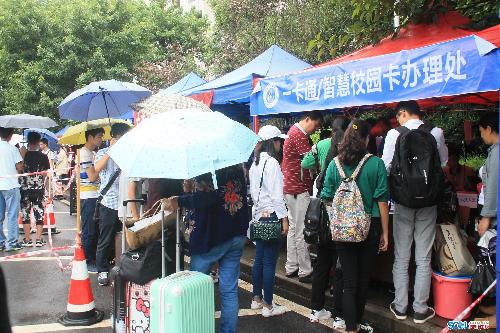 記者隨后跟訪了一名新生報到入學(xué)的流程。8時30分,新生小楊在學(xué)門口被學(xué)生志愿者帶到所在院系報到。報到有兩種方式,可選擇現(xiàn)場報到,也可選擇網(wǎng)絡(luò)報到,小楊選擇的網(wǎng)絡(luò)報到。