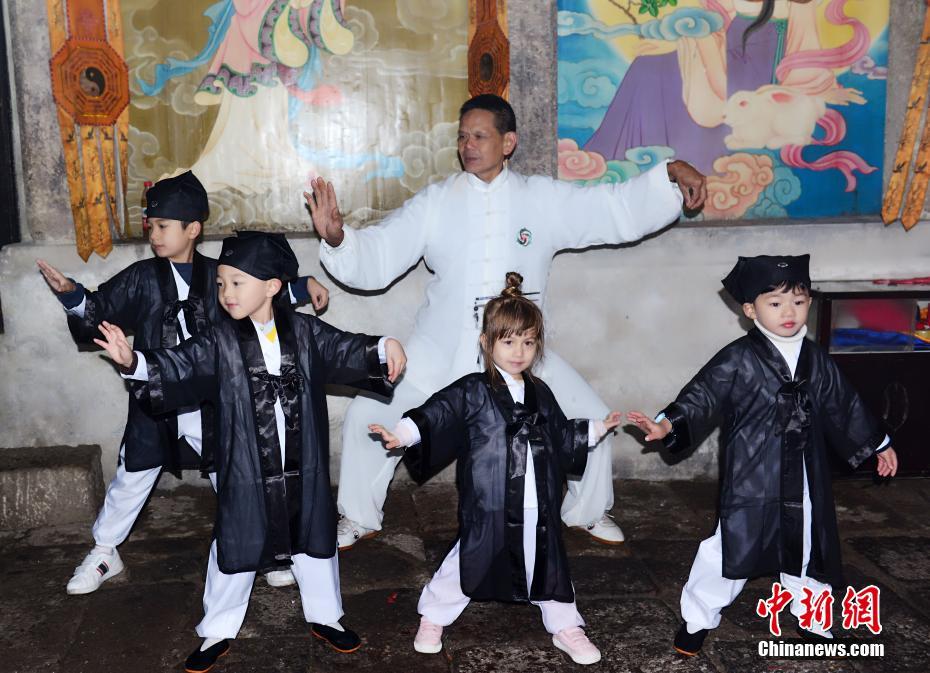 10月16日,在“道教名山”、世界自然遺產(chǎn)地江西上饒三清山,5名來(lái)自中外的萌娃身穿統(tǒng)一道服,手持竹簡(jiǎn),在三清宮跟著道教師傅朗讀《道德經(jīng)》、《弟子規(guī)》,學(xué)習(xí)太極拳、書法、古箏等中國(guó)傳統(tǒng)文化。這群萌娃中年齡最小的僅11個(gè)月,年齡最大也只有6歲。程希雪攝