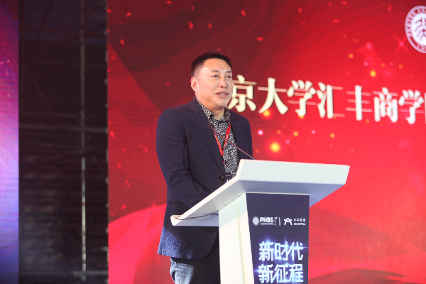 新生代表PE157班郭彥偉發(fā)言時和現(xiàn)場的同學(xué)們分享了兩點(diǎn)感受,他說他進(jìn)入北大匯豐商學(xué)院感受到了光榮和夢想,“我們要有使命感和責(zé)任感,因為我們不僅是學(xué)員,還代表著企業(yè)家,所以我們不僅要學(xué)習(xí)北大的精神,更要承擔(dān)歷史責(zé)任。”