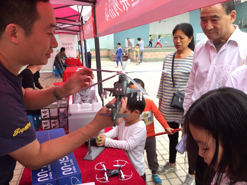 “哇,看它飛起來了”廣場另一邊,總簇?fù)碇蝗喝汉教炜萍济?,在現(xiàn)場操控員的引導(dǎo)下,不少小朋友躍躍欲試,伴隨著啟動(dòng)到起飛,方向控制,無人機(jī)一次次在歡呼雀躍聲中騰空飛躍......騰宇達(dá)航空航天科技產(chǎn)業(yè)有限公司的無人機(jī)項(xiàng)目點(diǎn)燃了青少年的航天夢,通過現(xiàn)場引導(dǎo)與試飛,給航天迷打造樂園同時(shí),也傳播了無人機(jī)飛行相關(guān)科普知識,對激發(fā)青少年航天興趣具有重要作用。