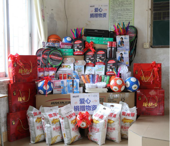 在捐贈儀式上,洋洋公益團(tuán)隊為橫槎小學(xué)的師生們送上籃球、足球、羽毛球、作業(yè)本、鉛筆、橡皮檫、文具盒、打印機等文體用品和教學(xué)用具,以及大米、臘腸等生活物資。橫槎小學(xué)謝校長代表學(xué)校對愛心團(tuán)隊一行表示感謝,并將錦旗和學(xué)生用心勾勒的美術(shù)作品回贈給碧桂園集團(tuán)廣清區(qū)域、廣州日報大洋網(wǎng)等愛心代表。