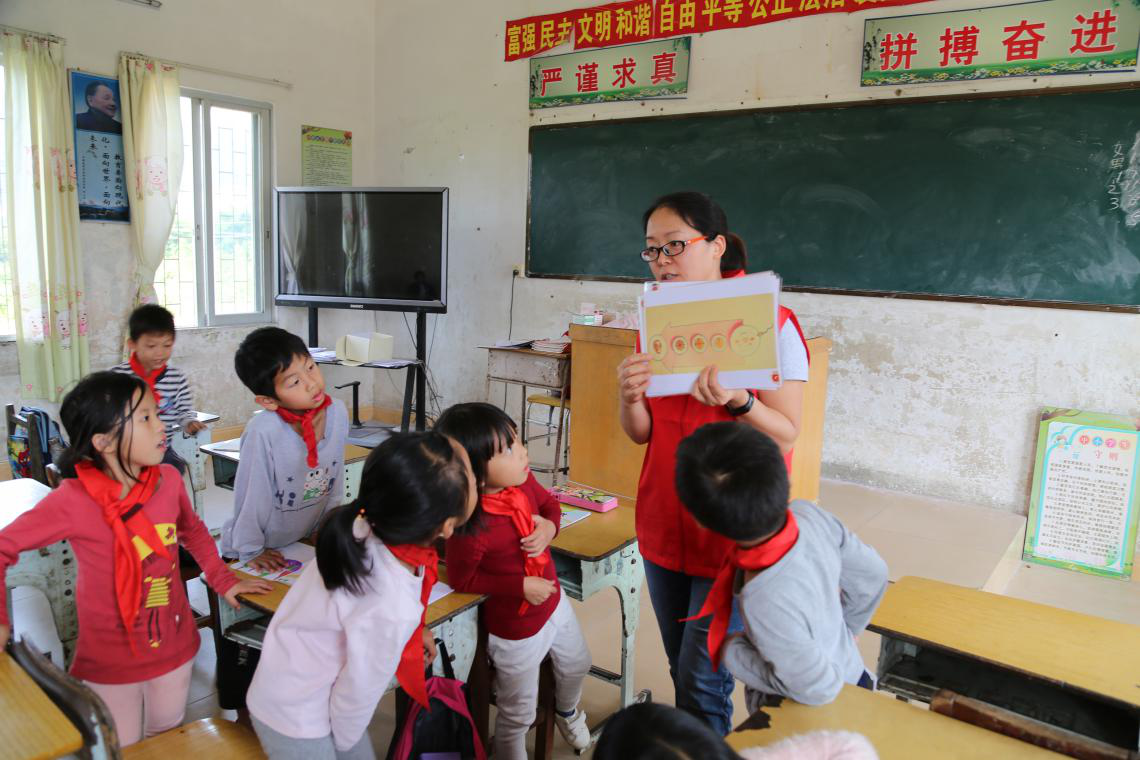 龍門縣是中國現(xiàn)代民間繪畫畫鄉(xiāng),以“龍門農(nóng)民畫”著稱。就讀于龍門縣橫槎小學(xué)的學(xué)生,因?qū)W?;A(chǔ)設(shè)施落后,教學(xué)物資匱乏,無法開展相關(guān)的農(nóng)民畫藝術(shù)課程。為了幫助孩子們通過繪畫感受自然生態(tài)與鄉(xiāng)村生活之美,傳承民間繪畫藝術(shù),洋洋公益團(tuán)隊中來自“德藝軒”美術(shù)培訓(xùn)機構(gòu)的彭小利老師開展“創(chuàng)意繪畫·神秘的海洋世界”美術(shù)小課堂,結(jié)合海洋中形態(tài)各異的生物,聲情并茂地講授素描、水彩等繪畫知識,讓孩子們感受繪畫藝術(shù)的樂趣。