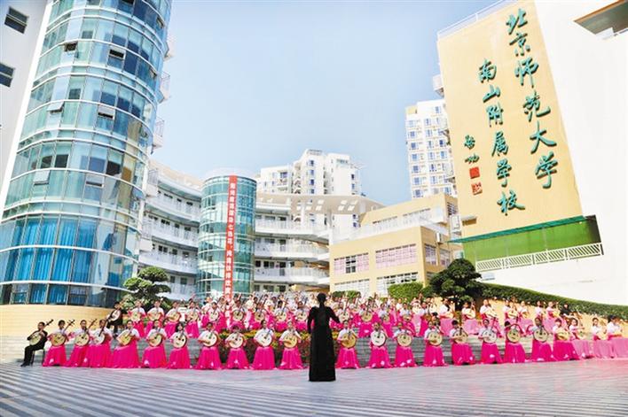 發(fā)掘民族器樂個性,傳承優(yōu)秀文化精髓,既是藝術(shù)工作者的一種情懷,更是教育工作者的一種使命。北京師范大學(xué)南山附屬學(xué)校小學(xué)部秉承實(shí)施“個性化素質(zhì)教育”的辦學(xué)理念,在“校園七色花,朵朵都精彩”的學(xué)生發(fā)展觀指引下,于2013年10月組建了深圳市第一支少兒阮樂團(tuán),樂手平均年齡10歲,是國內(nèi)平均年齡最小的阮樂團(tuán)。經(jīng)過數(shù)年的努力,樂團(tuán)發(fā)展到百人規(guī)模,頻頻登上國內(nèi)外高規(guī)格平臺演出,成為享譽(yù)國內(nèi)外的少兒阮樂團(tuán)。在第二批全國中小學(xué)中華優(yōu)秀傳統(tǒng)文化藝術(shù)傳承校中,北京師范大學(xué)南山附屬學(xué)校實(shí)力上榜。