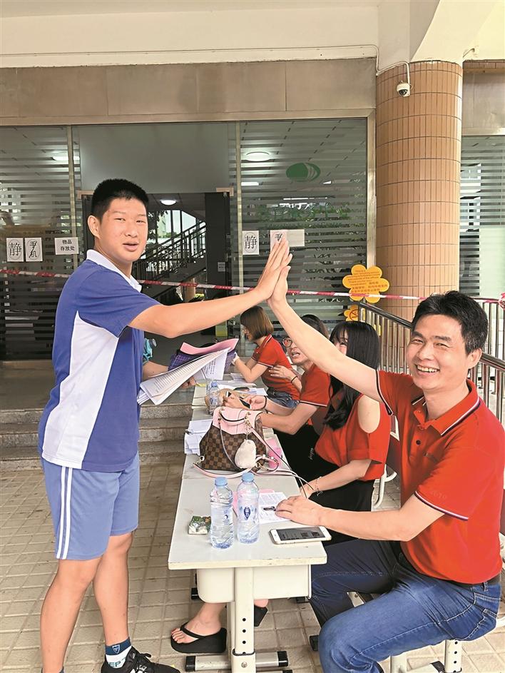▲丁立群(右)與學生擊掌。受訪者供圖