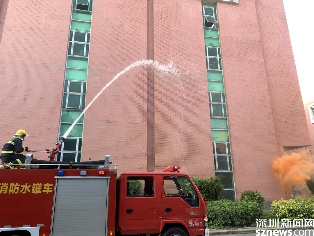 演練情景設(shè)定為工業(yè)園巡查人員發(fā)現(xiàn)火情,立刻上報(bào)并報(bào)警。隨后火警警報(bào)驟響,樓道內(nèi)冒出濃煙,疏散演練正式開始。工業(yè)園職工、居民在各組工作人員的指揮下,用口罩、衣服等捂口鼻,屈膝彎腰沿著既定的疏散路線,迅速向安全區(qū)域撤離。隨后社區(qū)消防員到達(dá)現(xiàn)場,用消防高壓水槍進(jìn)行高空滅火,撲滅火災(zāi),解除警報(bào)。演練結(jié)束后,社區(qū)還組織工業(yè)園職工、居民參加安全體驗(yàn)活動(dòng),學(xué)習(xí)消防救援設(shè)備的用法、進(jìn)行消防結(jié)繩和滅火實(shí)操訓(xùn)練。