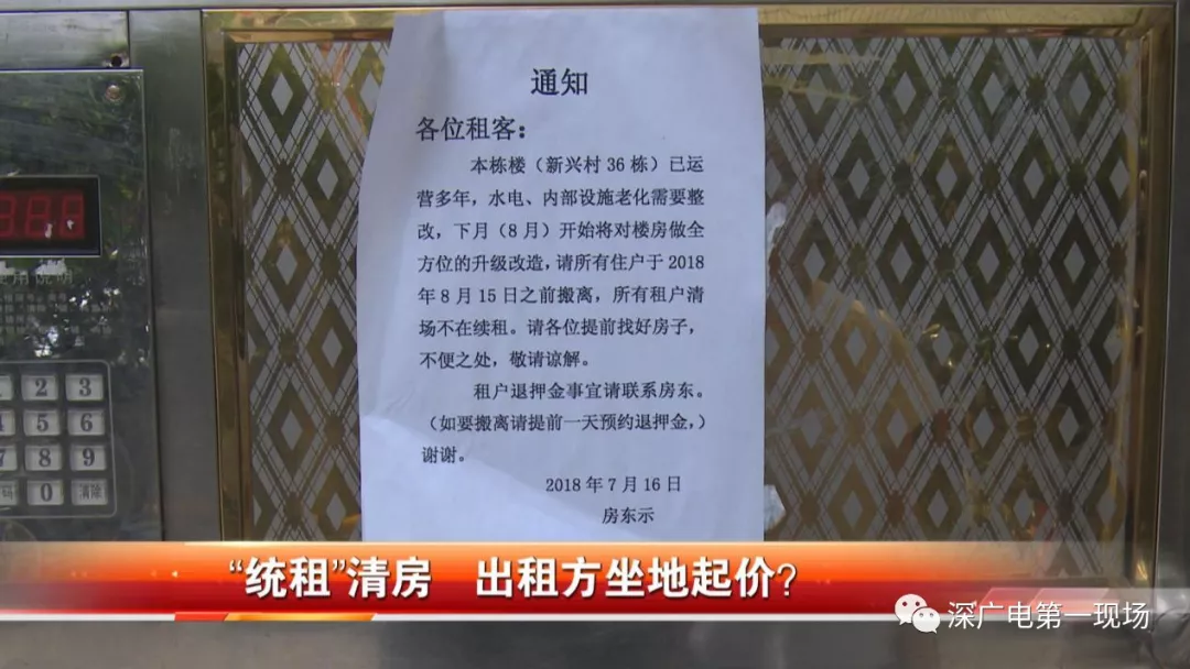 在趙先生家附近,記者找到了這個(gè)名為新興村的城中村,在其中一棟樓房的入口處貼著一張告示,上面寫(xiě)道,由于房屋水電設(shè)施老化,所以需要整改,8月15日之前所有住戶都得搬離,所有租戶都不再續(xù)租,落款寫(xiě)的是房東。