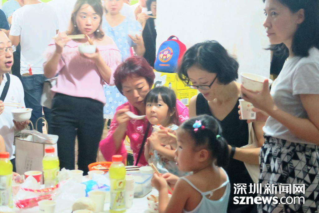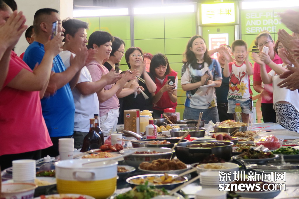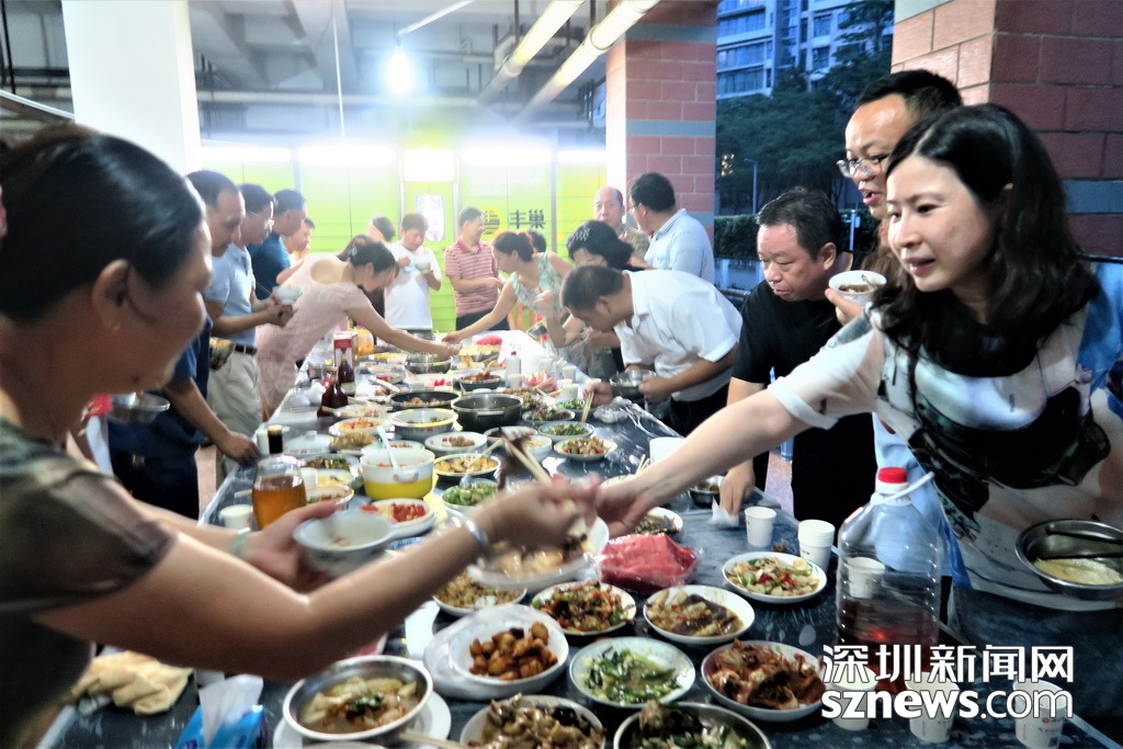 深圳新聞網(wǎng)訊 (記者 劉婷 林毓瑾 通訊員 張晉)住在鋼筋水泥森林,一墻之隔不往來,擦肩而過不搭話,這或許是城市鄰里關(guān)系的“痛點(diǎn)”,但深圳水木華庭的業(yè)主在8月11日舉辦了別開生面的“百家宴”,卻吃出濃濃的鄰里情,小編隔著屏幕都聞到了“愛的味道”…… 為慶祝水木華庭新一屆業(yè)委會的誕生,水木華庭業(yè)主微信群的群主楊莉建議11日在4棟B單元架空層,開個“百家宴”。這個主意一出來,水木華庭的業(yè)主們紛紛響應(yīng),業(yè)委會成員和業(yè)主大會籌備組成員也都紛紛表示:屆時將爭取貢獻(xiàn)一兩個拿手好菜! 于是乎,業(yè)主們分頭行動,籌備工作有條不紊地進(jìn)行。8月11日晚,水木華庭入伙15年來的首次“百家宴”如期舉行。