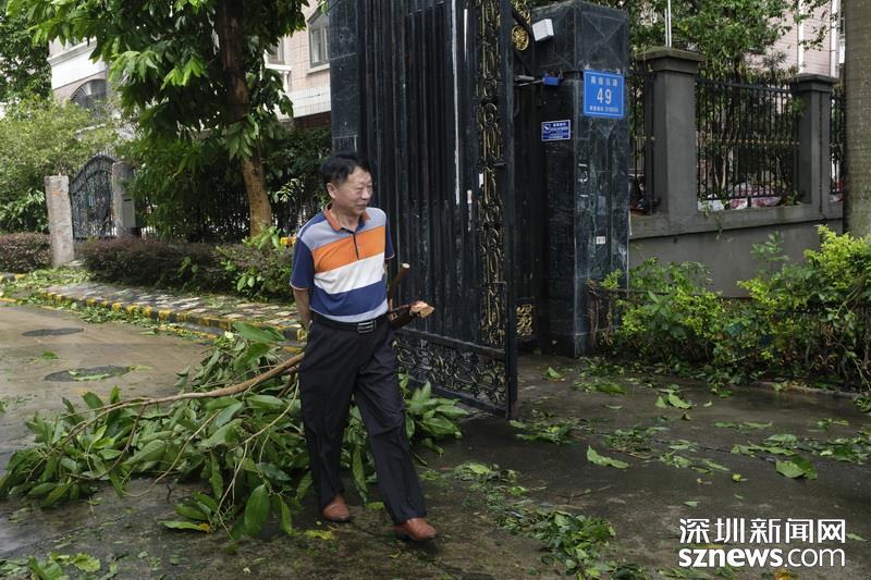 2018年9月17日10點12分,商報東二路富霖小區(qū)門口,一位市民從小區(qū)內(nèi)拖出已掉落的樹枝。