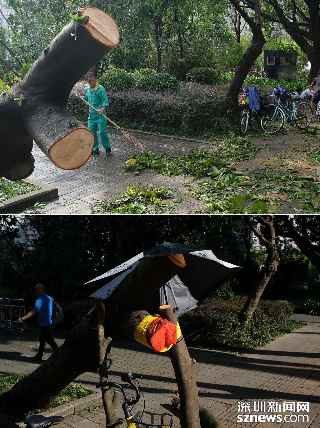 深圳新聞網(wǎng)9月18日訊(記者 楊浩翰)臺風(fēng)“山竹”已成過去式,它給深圳留下的影響卻不容小覷,倒塌的樹木和樹葉隨處可見,對城市交通造成了影響。9月17日、18日,記者兩次走訪福田石廈地鐵站以及商報(bào)二路,觀察倒塌樹木的清理情況。遍地樹葉已被清理干凈,這座城市正在快速“復(fù)原”。