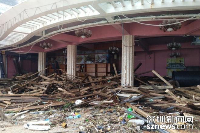 小梅沙旅游度假村景區(qū)內(nèi)沙灘海沙被卷走超7萬多立方,約2000米的堤岸及道路沖垮,公共、建筑設(shè)施及構(gòu)筑物全部受損,部分完全損毀,13處經(jīng)營管理場所損毀,綠化、樹木等嚴(yán)重破壞,直接經(jīng)濟(jì)損失預(yù)估超過5000萬元。