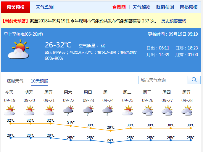 市氣象臺預(yù)測,20至24日,深圳仍以多云天氣為主,有短時陣雨,最高氣溫29℃~32℃。25至26日,晴天間多云。