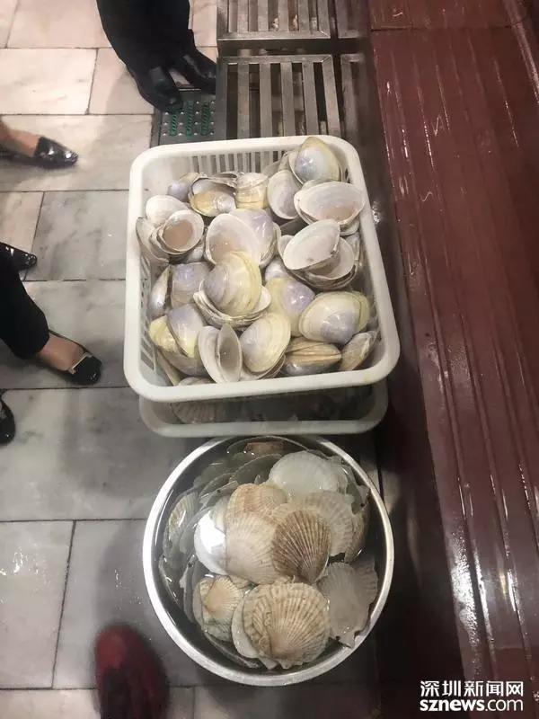 海鮮殼隨意擺放,執(zhí)法人員稱應(yīng)放在生品待加工區(qū)