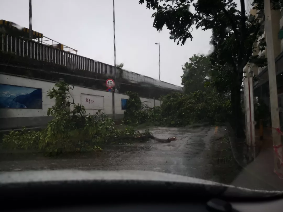 9月16日臺風(fēng)侵襲深圳,下午1點(diǎn)半左右,南園所徐濤副所長帶領(lǐng)民警在街面查看災(zāi)情,路面滿地狼藉,被風(fēng)刮斷的樹木橫七豎八,擋住許多車道。