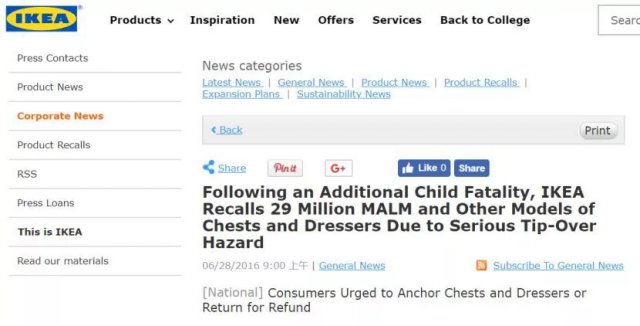 根據(jù)美國(guó)消費(fèi)者產(chǎn)品安全委員會(huì)的數(shù)據(jù),宜家當(dāng)時(shí)在全球召回了2300萬(wàn)件該系列產(chǎn)品 -其中包括近300萬(wàn)件在美國(guó)銷售的產(chǎn)品和110萬(wàn)件在加拿大銷售的產(chǎn)品。