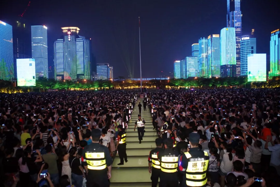 深圳市民中心是開放式場地,每天下午18時許,龐大的人流開始從四面八方涌來觀看燈光秀,給周邊道路交通和現(xiàn)場管理帶來極大壓力。福田警方周密部署、科學(xué)設(shè)置“七道防線”和“八片防區(qū)”,設(shè)立現(xiàn)場指揮中心,采取“核心封控、近端管控、遠端疏導(dǎo)”的方式疏導(dǎo)擁擠人流。劃分管控區(qū)域、加裝現(xiàn)場防沖撞設(shè)施、開展武裝巡邏;各部門捆綁作業(yè)、疏散有序、措施到位。