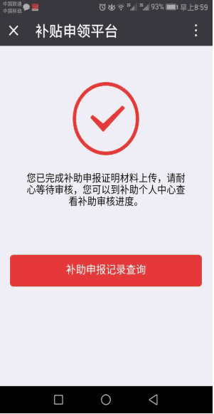 第五步:完成補助預登記后,點擊【補助申報記錄查詢】即可查詢個人補助申請進度了。