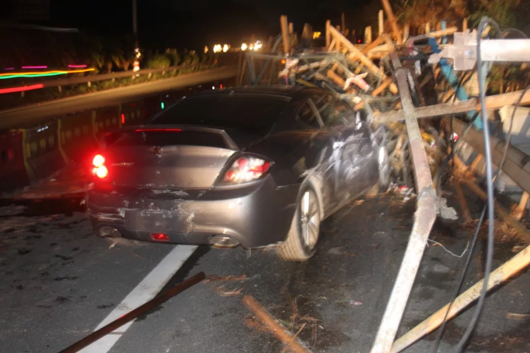 執(zhí)勤民警接報(bào)后立即前往龍崗區(qū)長(zhǎng)深高速3655KM往鹽田方向路段(高速路)處理事故,現(xiàn)場(chǎng)發(fā)現(xiàn)肇事粵B牌小車駛進(jìn)了高速公路右邊的施工區(qū)域撞上了鐵管,氣囊爆開(kāi),擋風(fēng)玻璃被鐵管直接刺穿,車輛損毀嚴(yán)重。