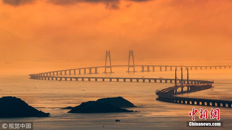 “超級工程”港珠澳大橋?qū)⒂?4日上午9時(shí)正式通車,一波美圖先睹為快。黃昆震攝圖片來源:視覺中國
