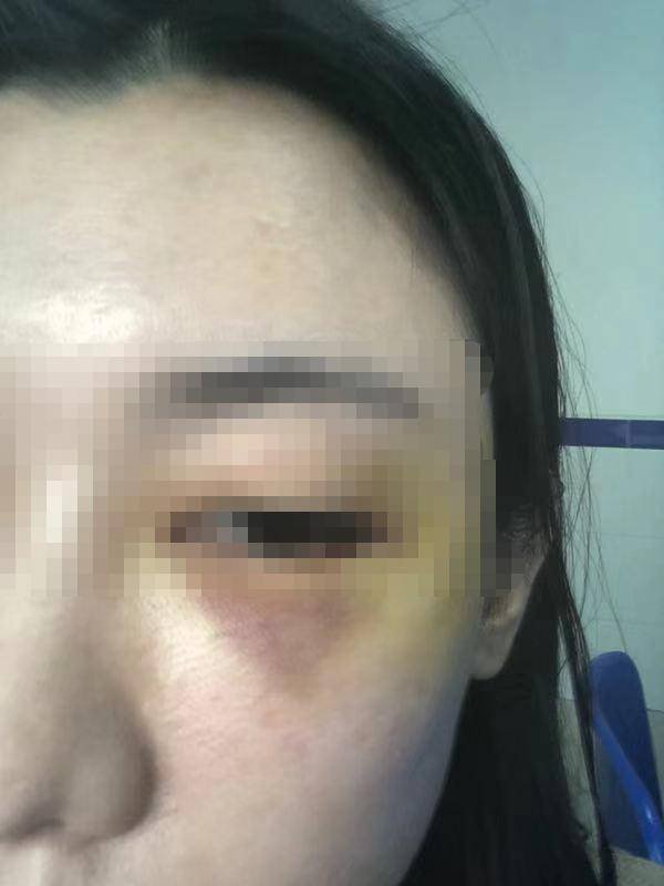 根據(jù)照片顯示,李小姐左眼下有一塊明顯淤青的部位,她表示,這是對(duì)方用手機(jī)尖銳部反復(fù)砸她臉部所受到的傷。因?yàn)槟槻渴軅?,目前她只能暫停工作?/p>